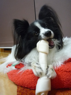大型犬用のガム、噛んでも噛んでも減りません~。歯磨き効果期待しちゃいます。上手に両手でつかみ、ガジガジ。ちびっこ ちゃーむ。やっぱり両手でつかみ、ガジガジ。あっしゅが一生懸命柔らかくしたところをいただきました~。小さいガムだと飲みこんで詰まったりする心配がありますが。このサイズだと、留守番中に預けても危険はありません。ただ、Lサイズは、お値段が高くてねぇ。。。一本1000円越えるけど。まぁ、何日か もつから安いものかな??↓で半額くらい!!賞味期限間近でもすぐ食べちゃうなら構わないわ~。ナチュラルバランス チューイングボーン L 賞味期限間近の為、大特価品本当は小型犬にはこっちのサイズよね??(ナチュラルバランス)チューイングボーン S(6本入り)(ナチュラルバランス)チューイングボーン S(6本入り) 【10P06jul10】