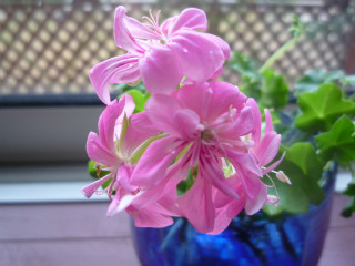 ちっちゃいアイビーゼラニウム、シュガーベイビー。冬を越すため、剪定した枝先をグラスに挿して一か月ほど。すると、どうでしょう!蕾すらなかった枝から、花をつけています。根を生やした枝もあります。土に挿し木して増やそうとした時は増えず。グラスに挿しておくだけで増えるなんて。。。ちょっと、悲しい。でも、うれしい!そんなささやかな幸せをかみしめるママと対照的に。雨で散歩に行けず、うなだれてるちゃーむ↓ソファの上で、ママばっかり楽しそうでずるいわ~~~、って視線をくれました★明日は晴れるといいね!かわいいピンクの小花!垂れ下がる姿もかわいい!!【期間限定特価!】アイビーゼラニュームシュガーベイビー4号鉢人気鉢花が限定サービス特価ですよ!
