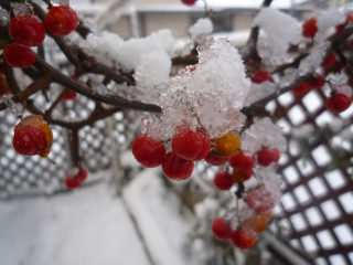 カーテンを開けたら、一面の銀世界。庭に飾ってあったツルウメモドキのリースにも雪が積もり。昨日、急いで軒下に入れたすみれの鉢にも、雪が吹きつけ。我が家のシンボルツリー、ブルーアイスにもツララがぶら下がり。ああ。冬がやってきたのだと。スリップする車のタイヤが空回りする音を聞きながら。根雪になるのかな・・・と美しい景色とは裏腹に暗い気持ちになり。冬を迎える準備がまだなことに気付く。雪ハネ、スノーダンプ、冬用ワイパーなんか、どこにしまってあったっけ??雪用手袋はどこ?除雪用の長靴やコートは??ああ。そんなつまんないモノを探して、一日が過ぎようとしている。今も、雪がしんしんと降っている。やっぱり冬は嫌い・・・。~~~~~~~~~~~~~~~~~~~~~~~~~~~~~新しい、バラも欲しいけど。今買って、凍らせてしまって、春新芽が出なかったら悲しいから。我慢します↓安いのに・・・。1あこがれのバラ苗が!☆★☆お一人様一個限定★送料込1000円ポッキリ福袋★★★
