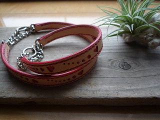 お友達のネットショップRYU↓で、新作のハーフチョーカーを作ってもらいました。http://ryunana.com/本革で、手縫いなの。キュートな感じに仕上がってて、感激♪あっしゅサイズでも25グラムしかないのよ!超軽量で、小型犬でも負担になりません。ヌメ革の間に挟んである赤い革が、ハートや丸の型で抜かれていてかわいいの♪装着するとこんな感じ~。せっかくのカワイイ首輪が、長い毛で隠れてしまって残念★ちょっと似た感じで、作ってもらったのはキーホルダー。ヌメ革に赤いステッチ、気にいりました!ボタンを外して、バッグの取っ手にくるんとかけられる、このタイプのキーホルダー。私の周囲はこのタイプを絶賛して使ってます。みんな、鍵が行方不明にならなくていいよ~、だって(笑)本革大好き、ハンドメイド大好き♪次は何を注文しようかな~と、考えるだけで楽しいのです。~~~~~~~~~~~~~~~~~~~~~~~~~~~~~デルバールローズ、二千円で買えるんだって!今なら、まだ在庫があったよぉ↓在庫処分セールで47%OFF!四季咲き、大輪ロゼット咲き!単品4号ロング鉢【バラ苗】デルバール:ビアンヴニュ (シュラブ 半つる性)~~~~~~~~~~~~~~~~~~~~~~~~~