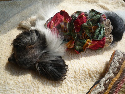散歩から帰って、ちゃーむは日向でネンネ。