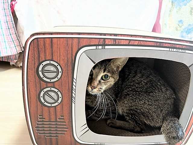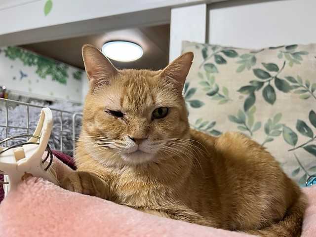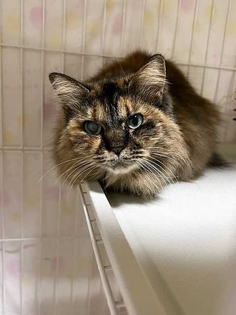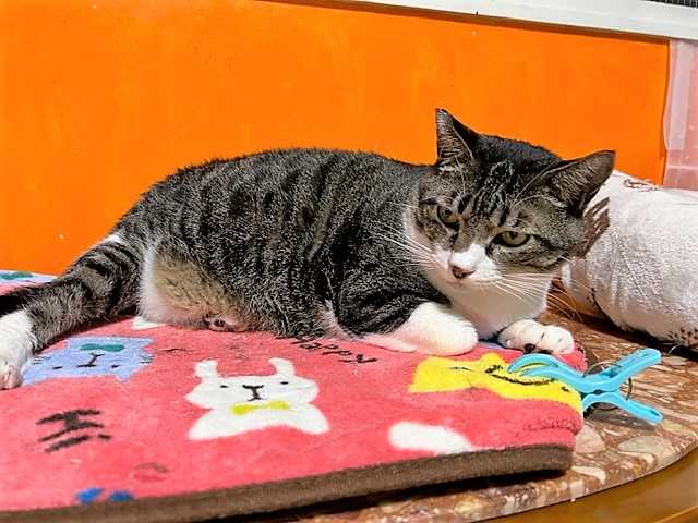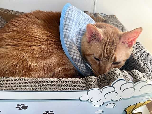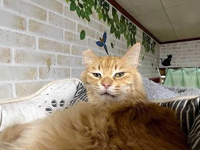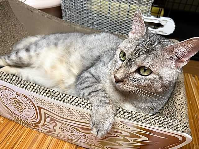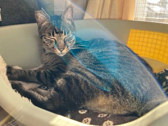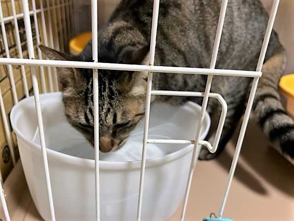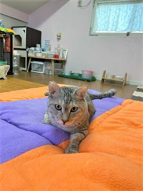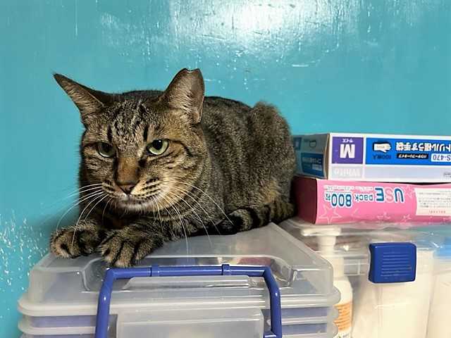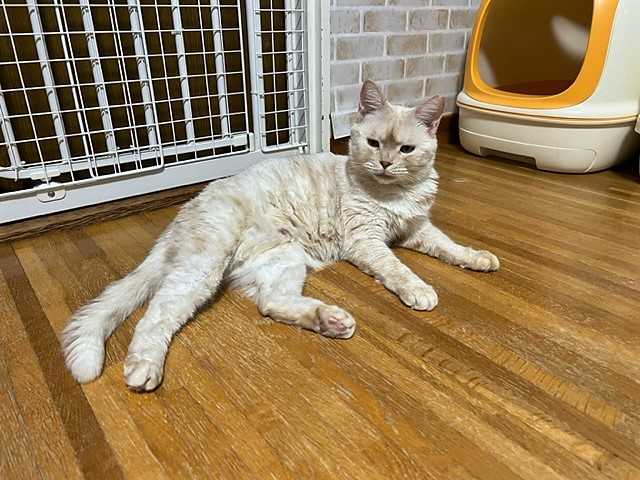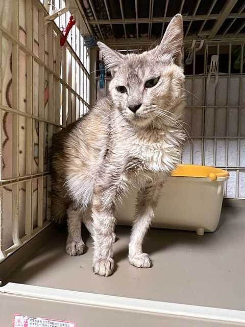 もうシェルターでの環境は慣れてきたと思うのですが、他の猫達とはまだ距離がありまして。。。ケージから出るのは怖いみたいです。