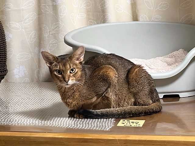 ベッド代わりのトイレ(ちゃんとしたトイレは別にあります)が落ち着くようで、段ボール箱やそれこそ本当のベッドを入れたら、にゃーにゃー鳴かれてしまいました。