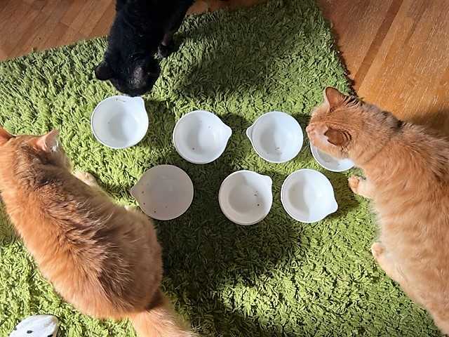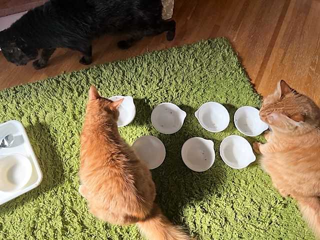 「マンボ」「くろちゃん」「サルサ」が空っぽになったお皿にまだ未練があるのか離れず(笑)