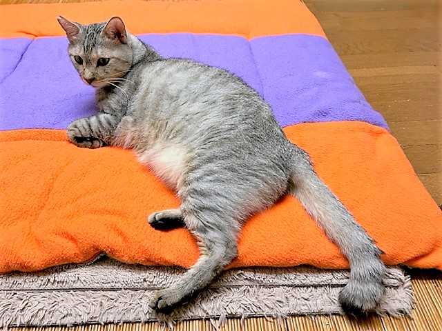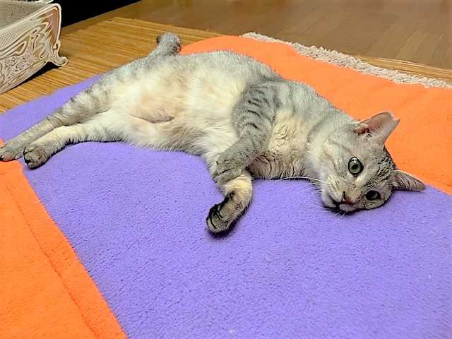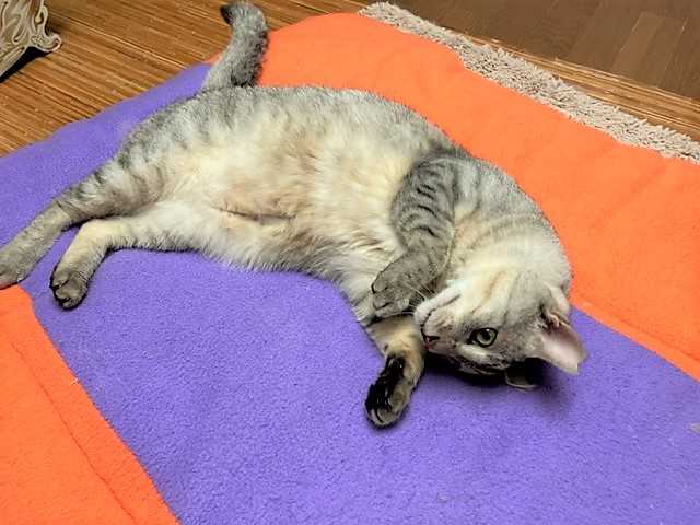 「しまちゃん」がごろりんと甘えん坊アピールをしていました。