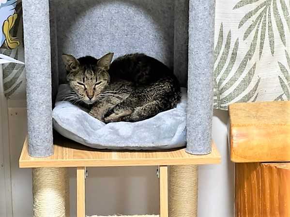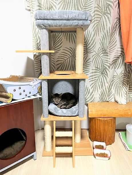 13日に新しいキャットタワーを造ったら、一番乗りが「キャラメル」でした。