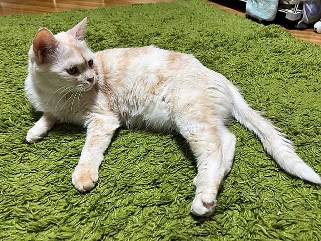 ばっちかったおしっぽはカットして綺麗にしました。身体のブラッシングが進まずまだ汚れてるって感じが否めません(-_-;)