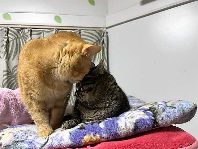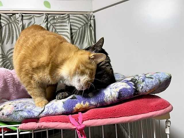 ひとりで寝ていることが多くなった「おたる」のそばには「よってぃ」が寄り添う機会が増えました。