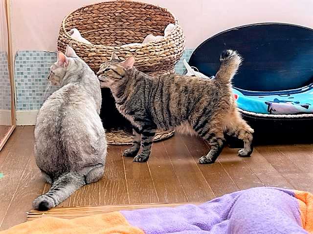 でも甘えん坊だし他猫と一緒に遊びたそうにしていたので、先住ちゃん(シェルター名アスパラ)と仲良くなれるといいな~。