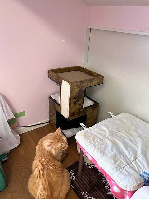 「アロハ」はちょっと警戒していて、いつものお気に入りの場所がなくなってしまったのでウロウロ。。。でもこの後また見に行ったら、ビッグ爪とぎの中や他のベッドで寝ていました。