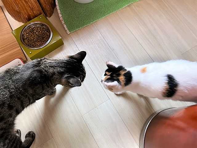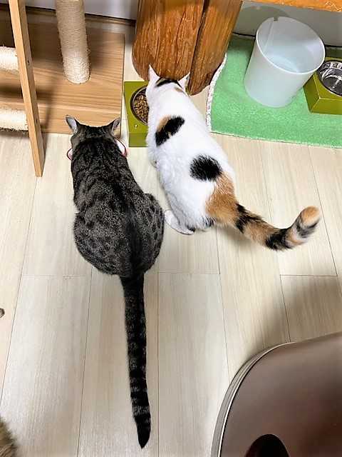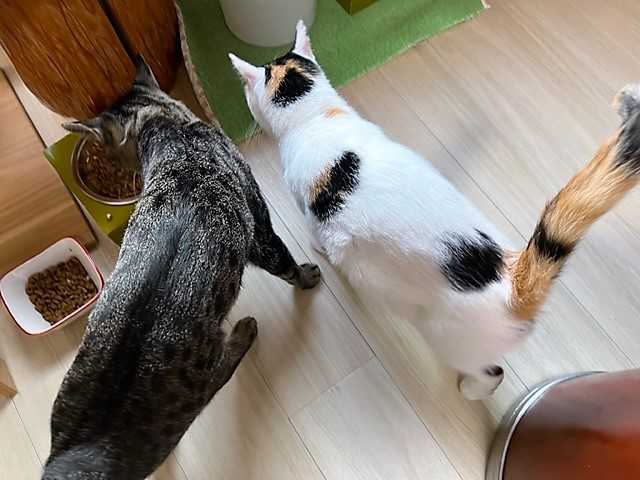 まだ専用の療法食を食べているので、食事タイムは別々になるかな?