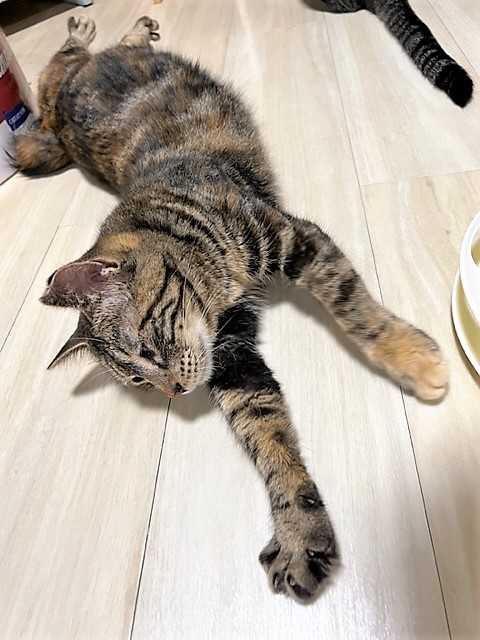 「みーちゃん」が寝ながら盆踊りの練習をしていました( ̄m ̄〃)ぷぷっ!