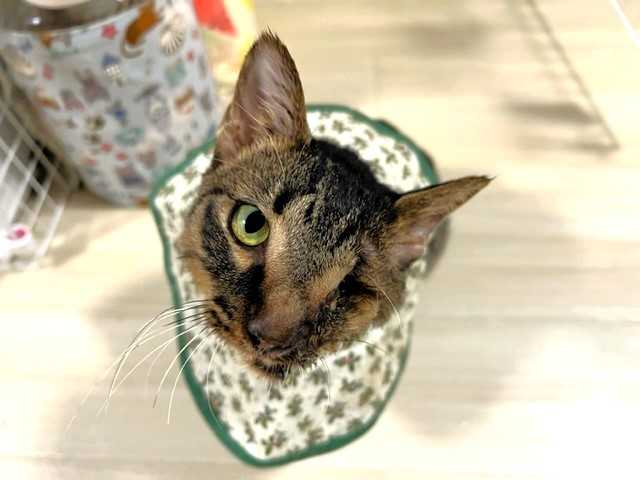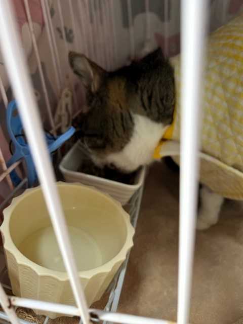 前肢がなくなり不自由なエリカラをつけたままだけど、がんばってたくさん食べてくれています。