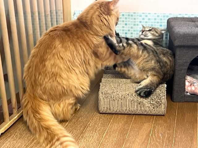 爪とぎを反対側にしてあげたら、真っ先にバリョバリョしてました。