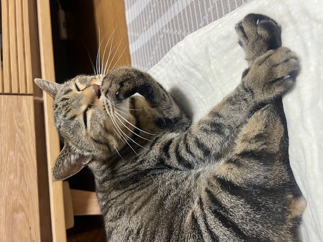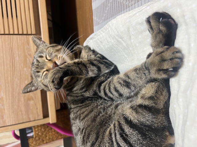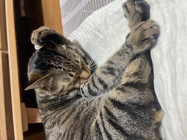 前回は私の調子が悪い時と、キキの機嫌が超悪い時にやってしまったので、うまく切れないばかりかガブリとやられて手に穴があきました(;´Д`)