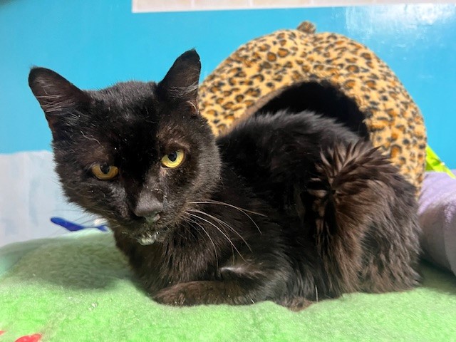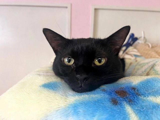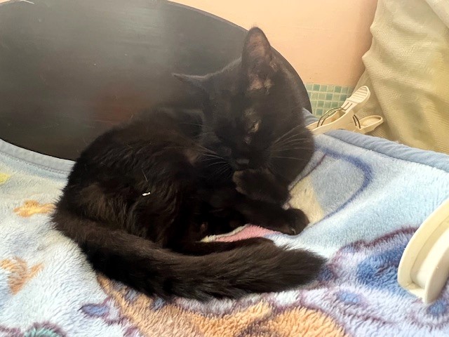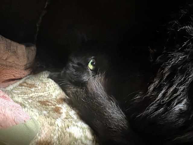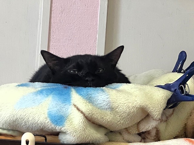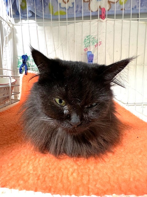 「ノアール♀」も涙目目ヤニで投薬中。ふわっふわの毛が気持ちいいけど、面白い生え方してる