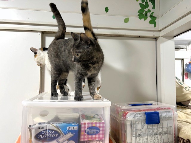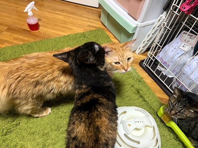 検疫ルームには、長逗留の「ソルベ」と「おーちゃん」兄弟「しーちゃん」がいます。
