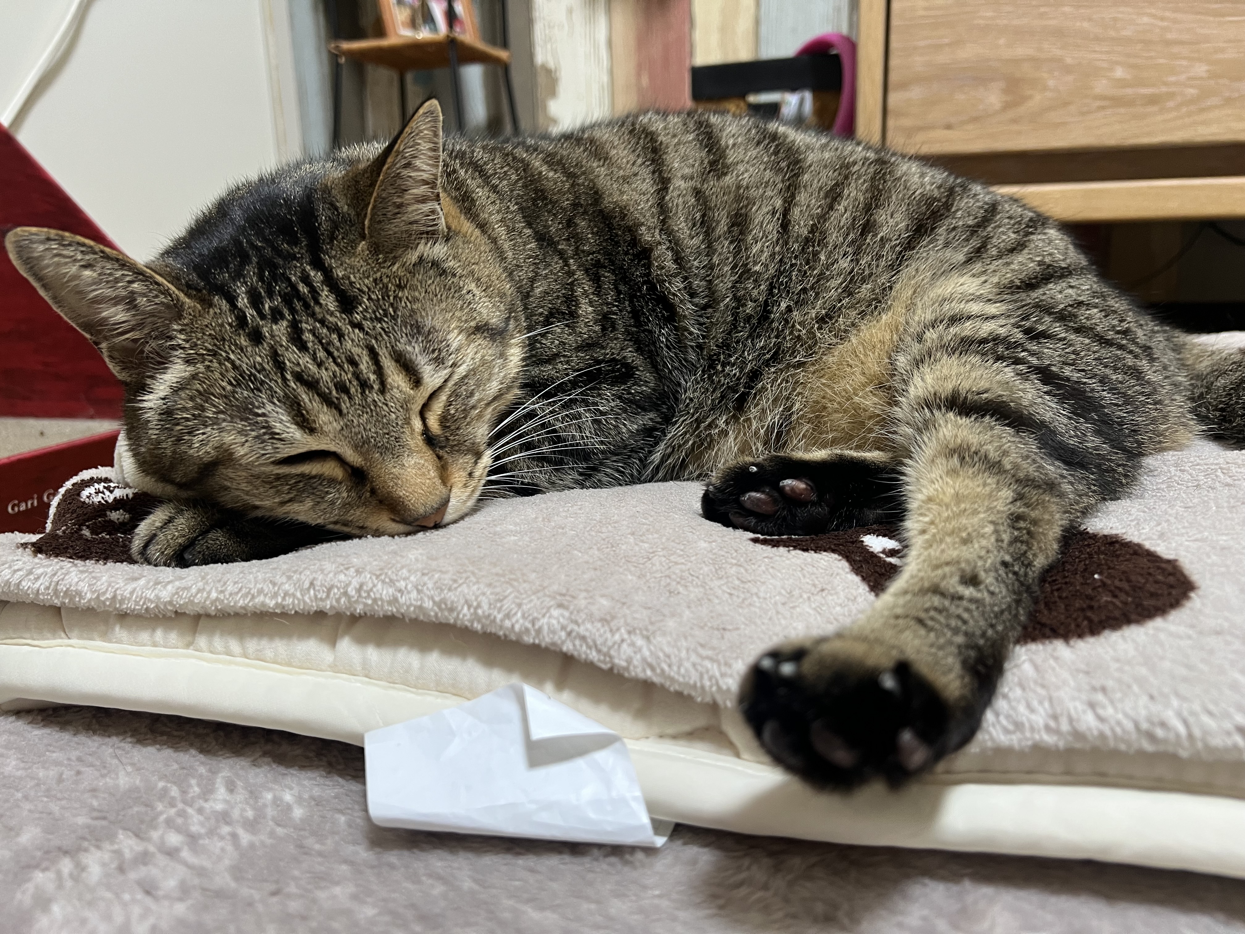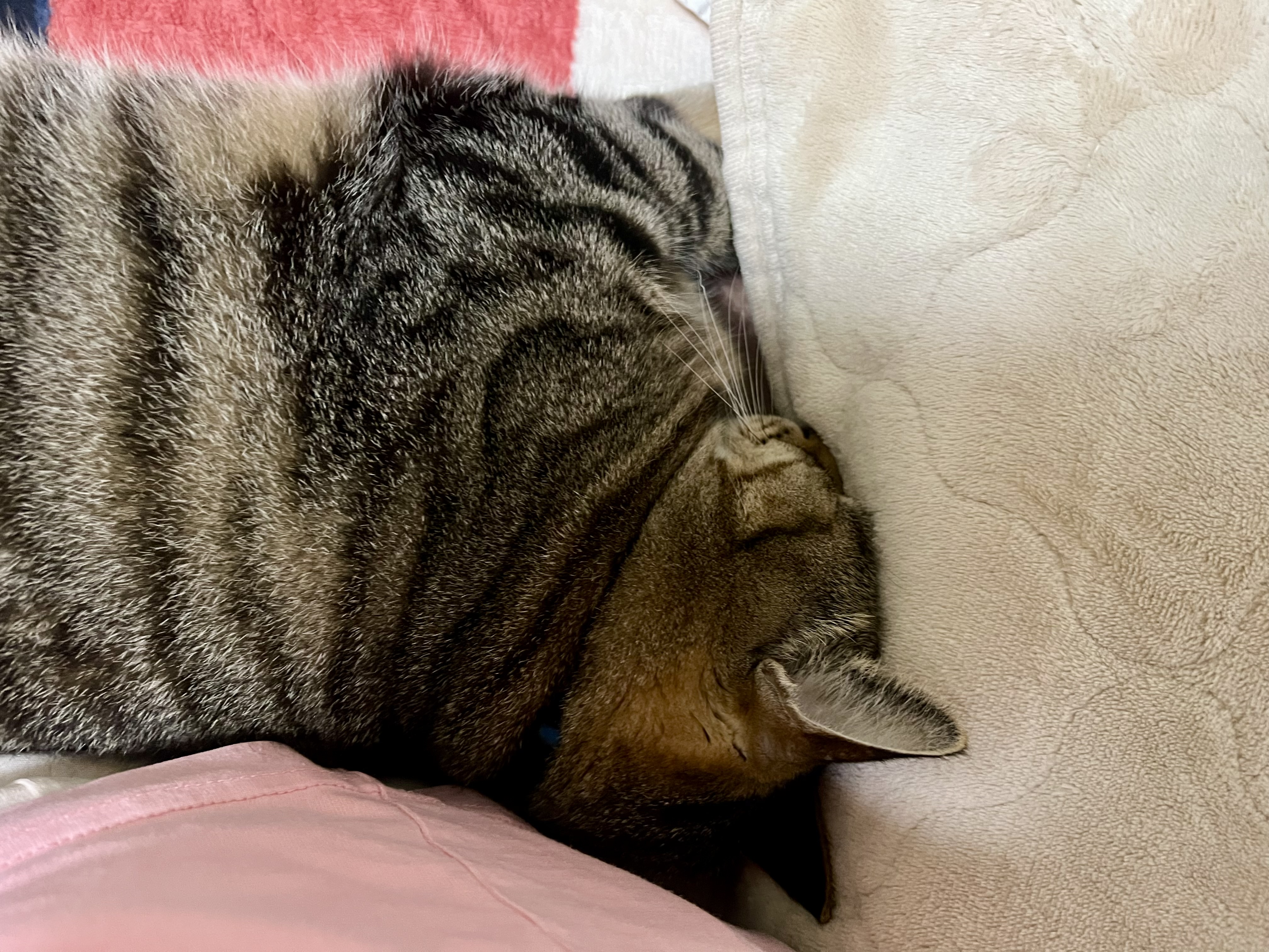 とまとはすでに私の枕に頭を押し付けて寝てました。
