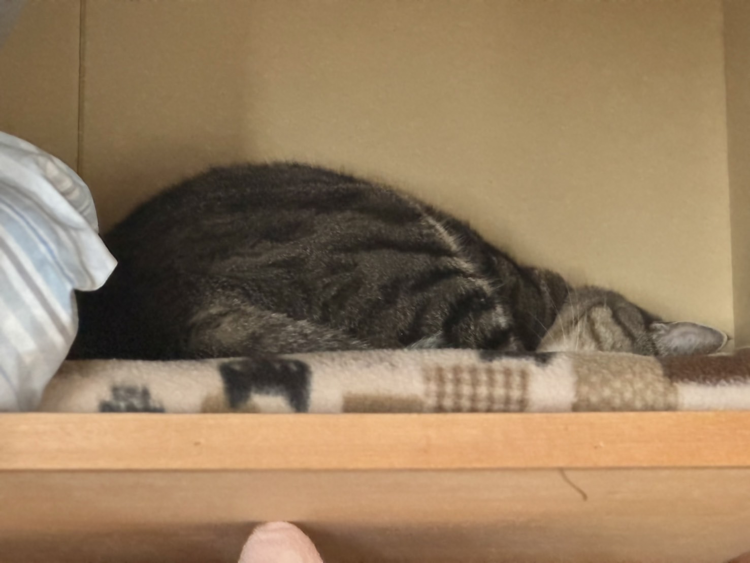 押入れの天袋のところ。ここにいる時は寂しいんだろなと思うと切ない😢