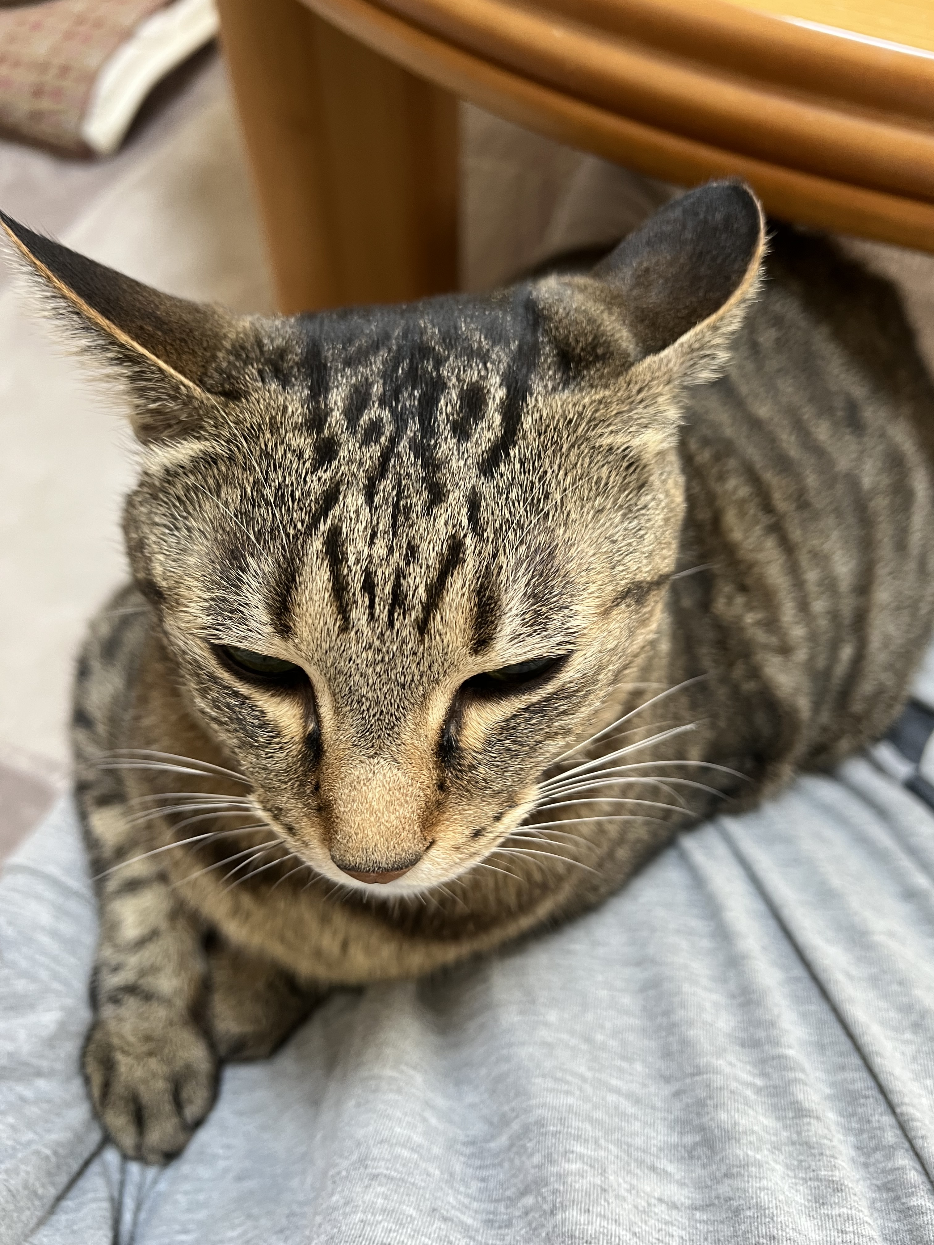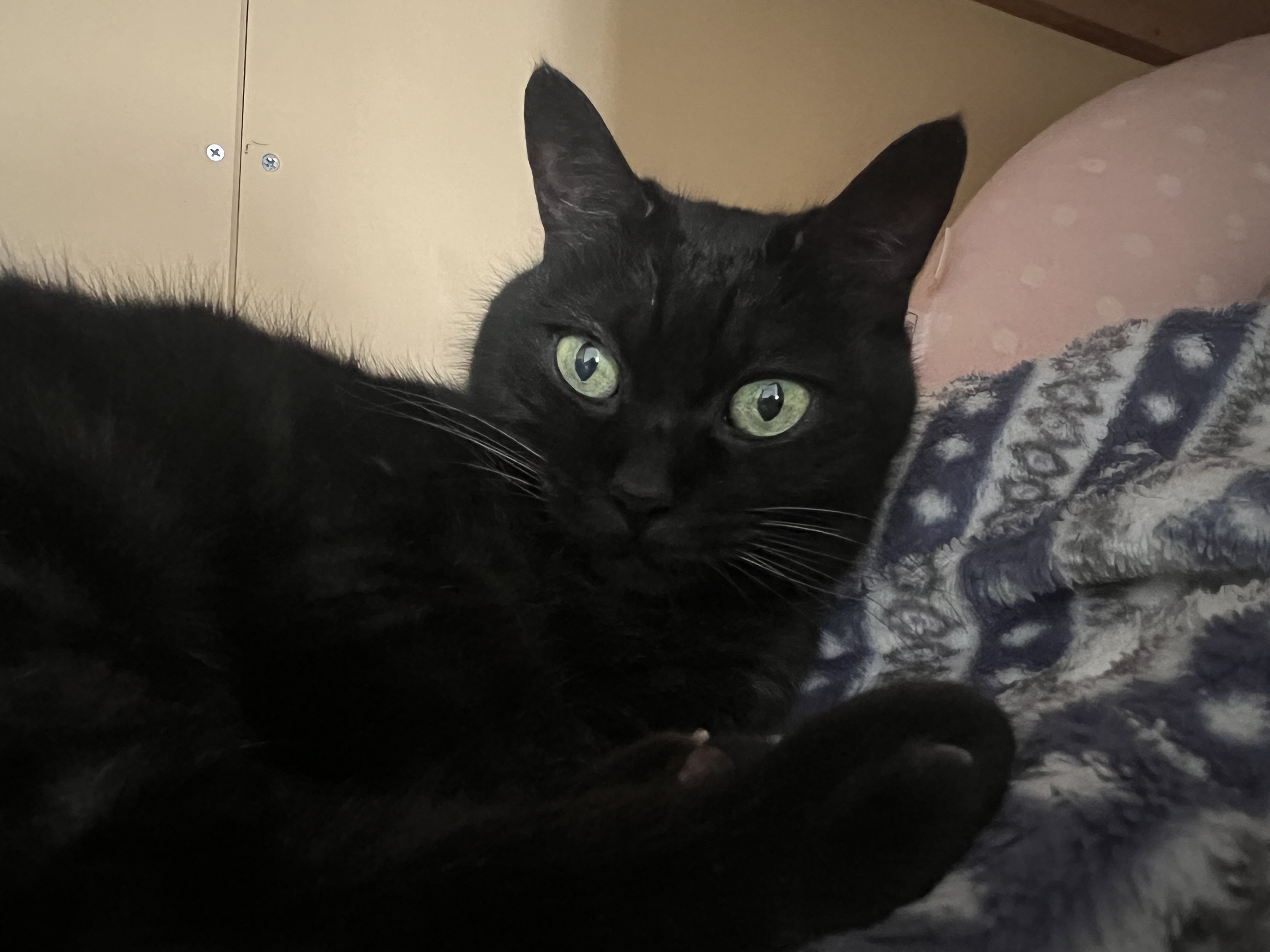 昨夜一緒に寝た後、朝ちょっと甘えん坊してから押し入れに行きました。