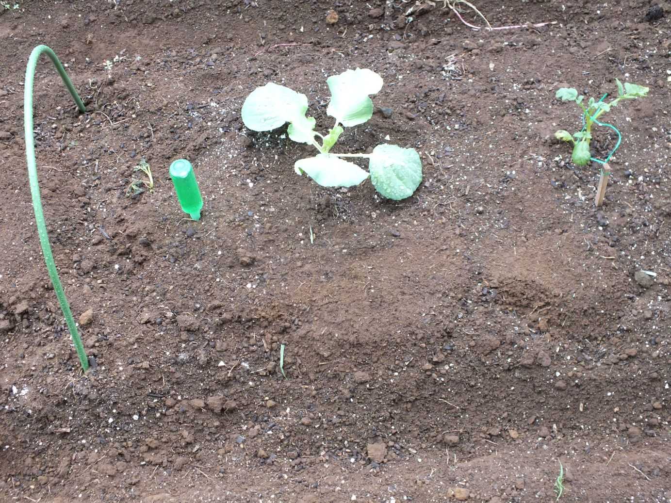 ​昨日植え付けた苗、始めに植えたキャベツとも、元気そうです。
