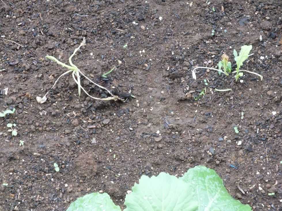 元々キャベツ植えたエリアは木の根が多くうまく育つか微妙なのと、日当たりもいまいちなので、日当たり良好のジャガイモ・大根エリアと出来具合がどう違うかに興味もありました。