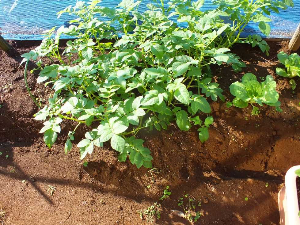芽かきして植え直した4本は元気です。ただ小さい目のものもあり、ジャガイモは出来るかは分かりません。
