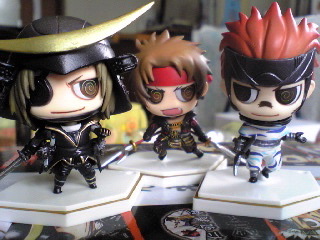 ワンコイングランデの染衣装第1弾 ですよ~。やっぱり可愛すぎるね~~~vvv兜をかぶっててもこの可愛さ!!第2衣装の宗様だと・・・殺人級の可愛さになるんでしょうね~~~~vvvv(はぁはぁ悶え死警告ですよ。 宗様は黒衣装もよくお似合いで/////って思ってたんだけど幸村が思いの他に似合いすぎてる!!!幸村って、黒を着ると頭のイイコに見えるわー。赤がバカっぽいって訳じゃ無いんだけど。黒幸村は攻め攻めしい。私好み。そして、やっぱりこー並べてしまう。だって目線が合わないんだもの。佐助x政宗←幸村 ですねvvvあ・・・コレ、首が取れるんだ・・・。宗様 誰の衣装と挿げ替えようかな。ま、何にしても兜は付いて来ちゃいますけどね~~。懲りずに参加中。 ↓ブログランキング。