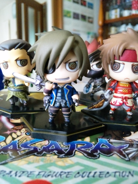 ワンコイングランデ 第3弾無事買えましたvvvってかやっぱ取り置き期限、とっくに過ぎてたので(15日だった)電話して下さいね~~(笑顔って怒られちった。ごめんなさいね、下旬発売だとばかり思ってたので・・・店頭にはもちろん一個も無く、奥にしまってあったのを取り出してくれました。あぁ・・・それは間違いなく私のモノ。いらっしゃいませ~~店頭に出されてなくて、ほんと良かった~~~~!!! やはり第2衣装はすばらしい!!!かわいい~~~よ~~~~~!!!表情もポーズも1の時と違ってて、ステキ!シークレットは、松永さんだとばかり思ってたのですがなんと第2衣装の佐助。この忍装束好きなんですvvvvちゃんと後ろに隠し刀があって、カッコイイ!もちろん手に持っているのは「伝説の1作目」宗様のお顔が描かれてる、ステキすぎる武器ですねvvvvこじゅと佐助は第7武器だけど、宗様と幸村は第8武器。確かにこの2人って、お楽しみ武器無いんだよね・・・。第7武器も普通にカッコイイやつだしな~。何がいいかな~・・・。ま、信長様のハリセンには敵わないと思いますが・・・小十郎の野菜セットもいいよな~~。あの萎える瞬間が好き!ネギじゃ無く、ゴボウで戦えってんだ。こここ 小十郎に・・・ち チクビがぁ!!しっかりあるところに笑えた。懲りずに参加中。 ↓ブログランキング。