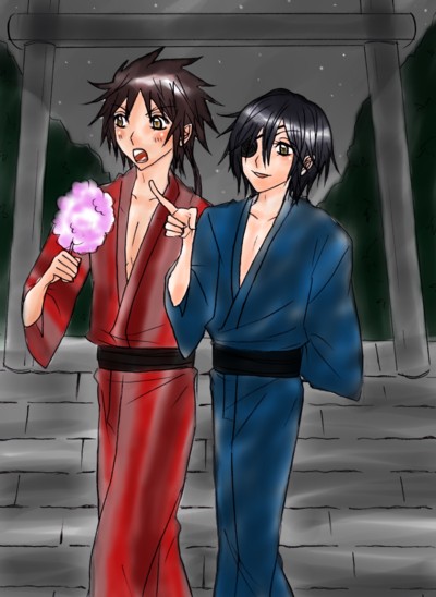 トップ絵、変えてみました。気が付いたらもう夏なんだもん。 月日の経つのは早いわーーーはい、今回は夜の夏祭りって事で。騒がしいのを描くのもいいな~って思ったのですが武田の男祭状態になりそうだったし・・・お館様のフンドシとか描けないよ~~ちょっと落ち着いた感じで あんまり落ち着いてないなぁ。花緒が切れたので、幸村がおんぶ。おんぶが描きたかっただけ。宗様が何か囁いていらっしゃいますがどーせ何か破廉恥な事でも言ってんじゃないでしょうかね~~。幸村は、このまま人気の無いお社とかに連れ込んじゃうんじゃないかな~~~。お社はラブホじゃない! ってね。あれ?夜中なのでテンションおかしいけど気にしないで下さい。懲りずに参加中。 ↓ブログランキング。