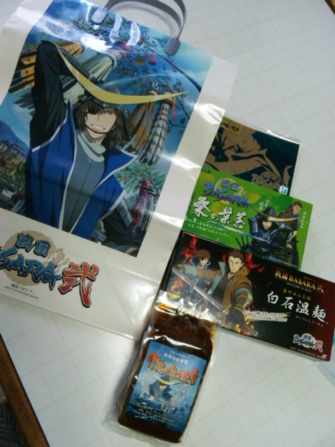 ついこの間お友達になって頂いた、みんとさんからこーーーーんなにステキなものをイタダイチャイマシタvvvvきゃっほぅ! 白石市のお城のところで販売しているBASARAグッズvvvトラベルナビを聞いて、伊達の仙台味噌欲しいな~~~~って丁度思っていたとこだったので、中を開けて見付けた時は・・・もう・・・vvvありがとーーーーーーー!!!!!嬉しいな~~~vvv嬉しいな~~~vvv今は何もかもがBASARAのパッケージになってるんですね。温麺すらも・・・。そ・し・てvv七夕祭りの時にずっごく欲しいな~~~って思ってた宗様のゆうパックが・・・!!!仙台に行かねば手に入らないと思ってたのに・・・はぁ もうね 大感激だよ!!ほんとにありがとう!みんとさんに今度何か送らないと・・・!そう言えば、前に白石に行った時 宗様たちのビールが発売されてたけど(美味しくイタダキましたvvv今でもあるのかしら?あ、今は地酒になってるかなぁ?懲りずに参加中。 ↓ブログランキング。