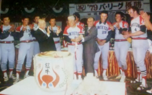 (前回の続き)■1979年11月4日(日曜日)、日本シリーズ第7戦。9回裏、1点差を追う近鉄バファローズは無死三塁、願ってもいなかった大きなチャンスをつかんだ。打者・クリス・アーノルドのカウントは1-3。広島 101 002 000 =4近鉄 000 021 00 =【近鉄メンバー】1(6)石渡 茂2(3)小川 亨3(9)チャーリー・マニエル4(7)栗橋 茂 → (PH)(2)梨田 昌孝5(2)有田 修三 → (7)池辺 巌6(5)羽田 耕一 → (PR)藤瀬 史朗7(4)クリス・アーノルド → (PR)吹石 徳一8(8)平野 光泰9(1)鈴木 啓示 → (PH)阿部 成宏 → (1)柳田 豊 → (PH)永尾 泰憲 → (1)山口 哲治 → (PH)佐々木 恭介■広島は守備陣のミス、近鉄はサイン見落としのミス。両チームともにミスを犯したが、近鉄は無死三塁のチャンスをつかみ、「流れ」はこの瞬間、近鉄に大きく傾いた。まさに「結果オーライ!」である。この時、広島の江夏豊、水沼四郎のバッテリーは「同点やむなし」と腹を括った。江夏「走られた、セーフになった。動いて来ることを自分がマウンドで見つけられなかったことに悔いが残るね。あっ、痛ぁー、やられたかと。キャッチャーの暴投は二の次。自分が走られた、自分の責任。あ~ぁ、と思った。こりゃ1点取られるなと思った、サードまで行ったからね」水沼「とりあえず、同点は覚悟でバッターに集中しよう。この場面では、まずスクイズはない」ただ面白いことに、水沼はもうひとつ別のことを考えていた。この試合の6回、近鉄を突き放す2点本塁打を放っていたため、 「これでMVPは消えたな・・・」一方、近鉄・西本幸雄監督。「こういうケースでは、単独スチールはあまりに無謀だ。カウントが0-2になった時にヒット・エンド・ランを決めた」■テレビ観戦していたボクも、この場面は大喜びした。これで併殺もなくなるし、最低でも同点に追いつくに違いない。そんな確信をもった。ただ、後から考えてみると、藤瀬が三塁に達したことが、後々、近鉄に暗い影を落とす。なぜなら、近鉄打撃陣にあって、この時もっとも期待できる打者は、この試合で8番に入っていた平野光泰だった。広島バッテリーと平野がガチで勝負する状況が近鉄にとってベターだった。だから高橋慶彦が言っていたように、最低限、ボールを後ろに逸らさなければ、藤瀬は二塁に止まっていた。三塁に行かず二塁に止まっていたほうが、近鉄にとって有利な展開になっていたとボクは思う。詳しくは後述するけれど、表面的に見える「結果オーライ!」というのは、後々、思わぬ副作用がくっついてくるものなのだ。(写真)1979年、パ・リーグ初優勝祝賀会1日1クリックお願いします