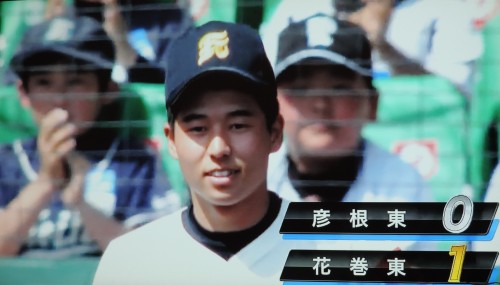 投手はスピードだけではない、今日行われた3回戦・花巻東ー彦根東戦を見てつくづく思いました。(延長10回、花巻東1×ー0彦根東)花巻東・伊藤翼、彦根東・増居翔太、両投手ともに制球力を武器に相手打線を翻弄し続けました。とりわけ増居は制球に加えて緩急を自在に操り、5回までは完全、6回に四球を与えた後は9回終了までノーヒットに抑えました。花巻東打線はバットに当てるのがやっと。130km前後の直球を剛速球に見せる投球術は大したもんでした。延長10回、無死満塁の場面で7番・藤森晃希の犠飛でサヨナラ負けしますが、この回の2本の安打と、代打・八幡尚稀に与えた四球が悔やまれます。「たら、れば」は禁物ですが、もしこの試合で増居がノーヒットノーランを達成していたら、センバツ90回の歴史で、13人目(完全試合を含む)の大記録となるはずでした。ちなみに第1号は、昭和6年、広島商の灰山元治投手(相手は坂出商)。この時、広島商のショートは、のちに南海監督となる鶴岡一人さんでした。(写真上)延長10回、サヨナラ負けが決まり、がっかりした表情の彦根東・増居翔太。9回1/3、144球、被安打2、奪三振14、与四死球5、自責点1。(写真中)「赤鬼」真っ赤に染まる彦根東のアルプススタンド。(写真下)急きょ1回途中からロングリリーフして勝利投手になった花巻東・伊藤翼。10回、127球、被安打6、奪三振4、与四死球1、自責点0。※写真はすべてNHK。