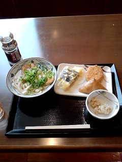 土曜日にGM殿に会えなくなりました。残念です。運気が下がっていると思い、丸亀に行ってきました。仕事の合間をぬった昼食です。 きつねうどんに海苔はんぺん、コロッケに稲荷ずし? いや~、きつねうどんにオロシ生姜は良く合います。