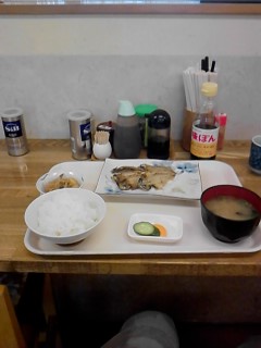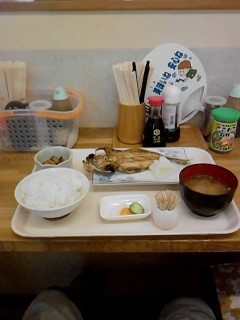 やっぱりきたのが「市場食堂きくち」です。大型アジの開きですが、美味いのです。