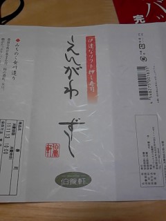 母からの土産です。 2~3日常温保存できるヒラメの押し寿司です。うまいですよ!
