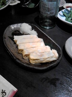 小田原は「わん」でやりました。最近の居酒屋のつまみはおいしくなりましたね~!これもなかなか…、む!? た、たまご?ここまで進出してたか…、やるな!タマゴ男!!