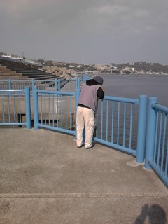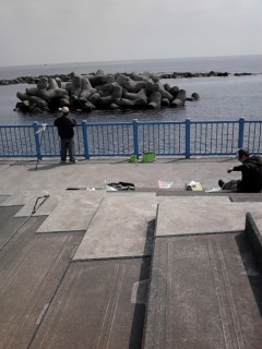 海まで歩いてみました。探してみました、GMとたけし店長を!いらっしゃいました、既にGMがタカハノダイを1匹釣ってらっしゃいました。流石です、「ビッグメジナハンター」を名乗る方です。暫くすると、たけし店長が…、やりましたね~!いずれは自称「自称タマゴ男」を引き連れて参戦したいと思います。お疲れ様でした。