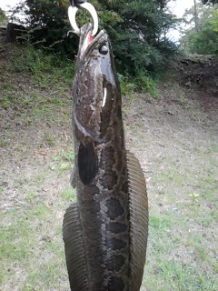 ライギョに3回、バスに1回逃げられたが、いいカタだが、小さめだった!