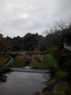 秋の池です。釣り人はいませんでした。晴れていなかったのが残念です。