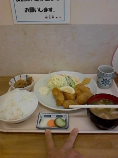 「きくち」へ「カキフライ定食」が始まっていたが、「タイの兜焼き定食」を食べる。うまし!