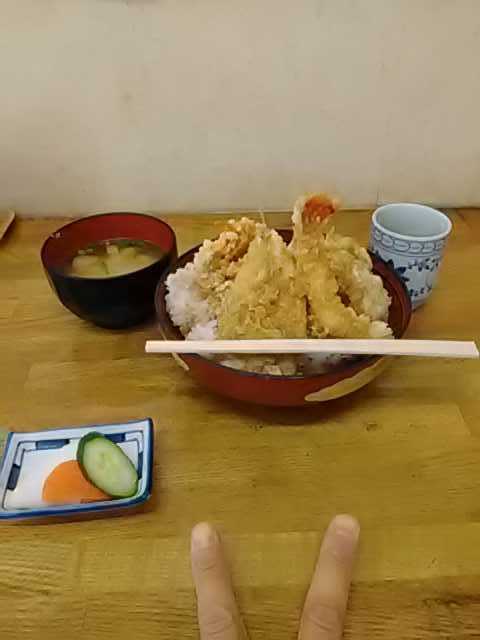 きくちで天丼を楽しむ、うまし!そうか、カキフライもあったのか…。