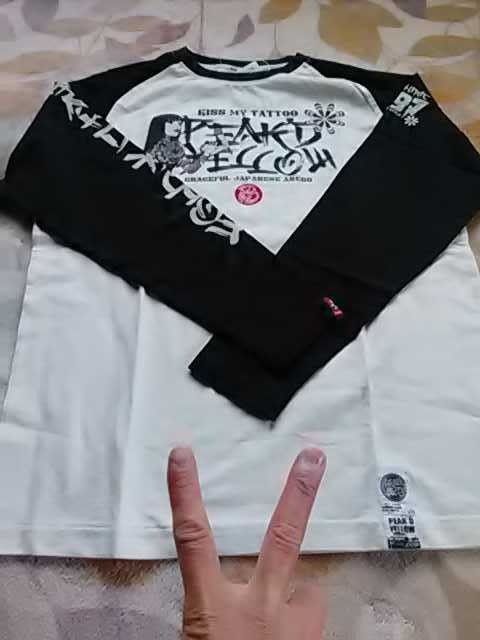 カッコイイ一枚ピークドイエローのロングTシャツ、たまらない!KISS MY TATTOOロングTシャツ Peak'd Yellow PYLT-227 ピークドイエロー 長袖Tシャツ 着物 花魁 エフ商会[new]和柄専門店のサクラスタイル