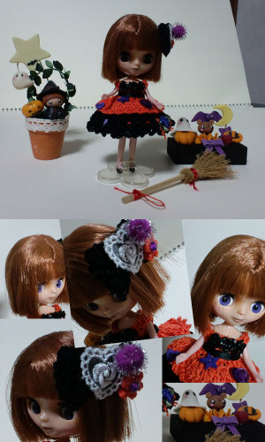 バザー用のシルバニア服のラッピングが終わったので久しぶりに自分用のハンドメイドです。10月なのでハロウィン服 粘土小物は数年前に作ったものをひっぱり出してきました。箒は100円ショップ、ナチュラルキッチンで買ったお気に入りです。 プチブライス、角度によって表情が変わるので好みの表情を出そうと いろいろ撮ってみました。ちょっと怖い顔、妖艶な顔にみえることもあるけれど私は可愛いやさしい顔が好きです。 ひとつに絞れなかったので 5枚をまとめてみました。わが子のアルバムをつくっている気分。子どもの写真って、同じようでもほんの少しの表情の変化を全部保存しておきたいですよね