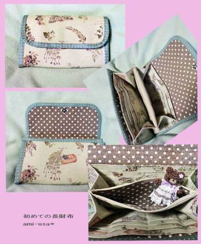 クラフトハートトーカイさんのキットで長財布をつくりました。少々(だいぶ?)‘難有り’の出来ですが自分用なので気にしなーい早速今日から使おうと思います。 とりあえず早く形にしてみたくて何の飾りもつけず、シンプルな出来上がりです。キットは布や付属品を選ぶ手間がない分早く出来て楽ですね。布も可愛いドットのバイアステープも余っているのでお揃いの小物を作りたいと思います。