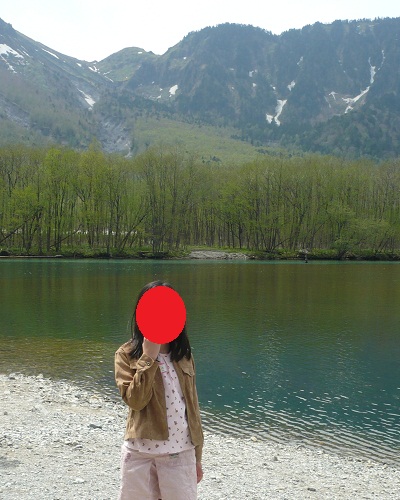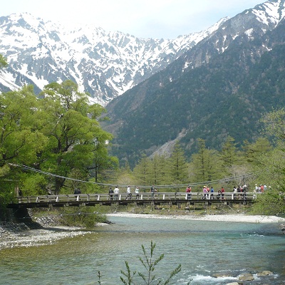 田代池から30分歩いて大正池に着きました。 大正池は焼岳の噴火によってできた池で、梓川から流れ込む 土砂のせいで年々小さくなっているらしいですね。 大正池で少し遊んでから、また来た道を戻り、今度は 自然研究路の林間コースを通って上高地帝国ホテルまで 行きました。 帝国ホテルの近くは5月なのにまだ雪が残っていました。 見たかった野生の猿も帰りのバスの中から少し見えたし、 大満足のハイキングでした。