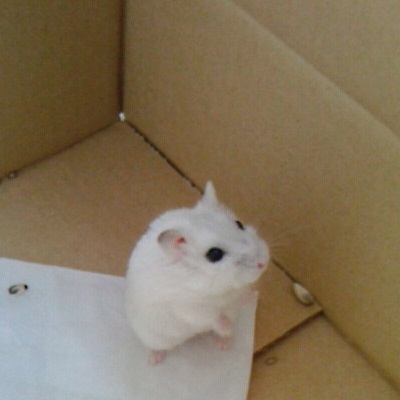 ダンボール箱にハムスターのキルアを入れて遊ばせました。 最初は変なとこに入れられたなって顔でキョロキョロ していましたが、そのうち毛づくろいを始めました。 気に入ったのかと思ったんですけど・・・