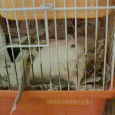 昨日までと違って、今日は寒いですね。風が強くて、 ビュービュー風が吹く度に家が揺れてました。 キルアも昨日まで元気に歩きまわっていたのですが、 今日は寒いのかゲージの新聞紙の下にもぐったまま 呼んでもなかなか出てきません。 私は一昨日くらいから風邪をひきまして、 昨日、疲れたせいか37度2分の熱が・・・ 今は36度8分に下がったので、大丈夫ですけど、 明日、出かけられるのかちょっと心配です。