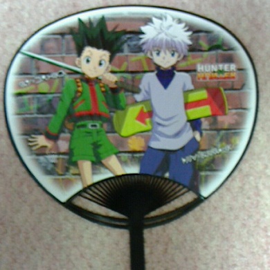 HUNTER×HUNTERのうちわを買いました。 表がキルアとゴンで裏がクラピカとレオリオです。 今年の6月は涼しくて、扇風機を出すには早いので、 うちわで十分です。 節電を考えると、エアコンは7月までつけません。 毎日キルアを観賞しながらパタパタうちわを扇いでいます。