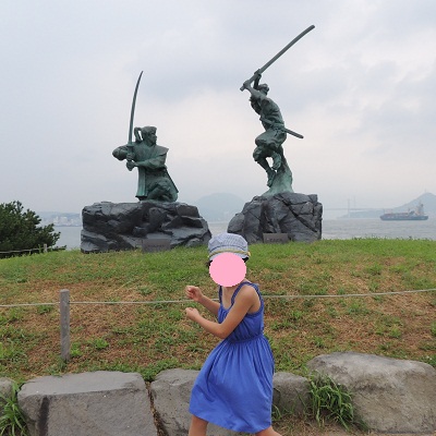 レトロライン潮風号に乗って、めかり展望台に行きました。 壇ノ浦の戦いを描いた壁画を見ました。 関門海峡ミュージアムに行きました。 海峡アトリウムの巨大スクリーンの映像を観た後、 海峡歴史回廊の人形を見て、リアルタイム関門海峡で 操船シミュレーションをして遊びました。 海峡レトロ通りのお化け屋敷に入りました。 入口から真っ暗で娘はビビりまくり、最後は落ち武者に 追いかけられて、キャーキャー叫んで逃げました。